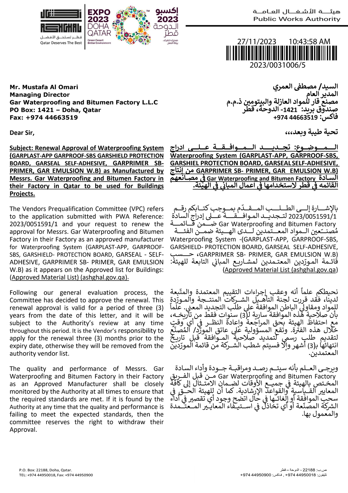 Qatar’s Waterproofing Specialist GAR Waterproofing & Bitumen Factory OUR CATALOG GAR Waterproofing & Bitumen Factory OUR CATALOG Qatar’s Waterproofing Specialist GAR Waterproofing & Bitumen Factory OUR CATALOG Qatar’s Waterproofing Specialist GAR Waterproofing & Bitumen Factory OUR CATALOG Qatar’s Waterproofing Specialist